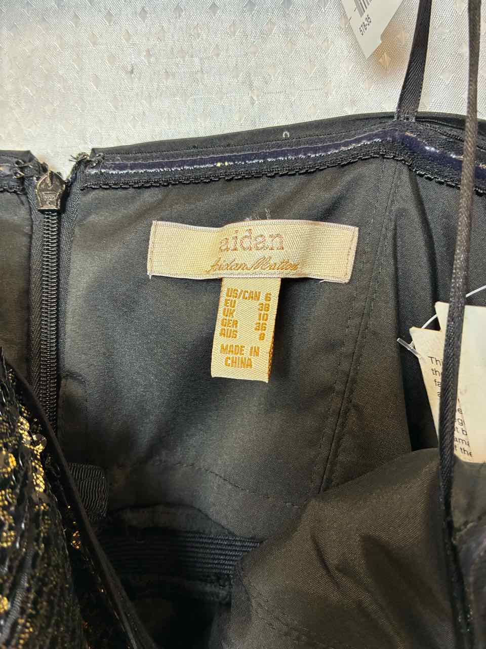 Cache Gold Sequin with Black Sheer Strapless Dress Size 6