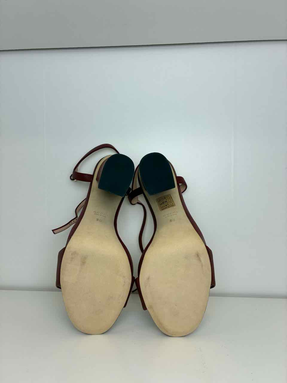 Gucci Heels w/ Horsebit Detail Red Leather Block Heel Ankle Strap Size 38