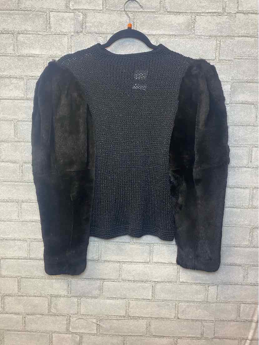 Camille black knit jacket with real fur sleeves S/M