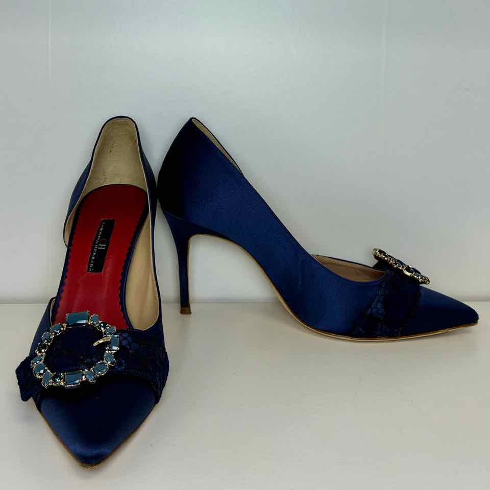 Carolina Herrera Satin Navy Pumps 39